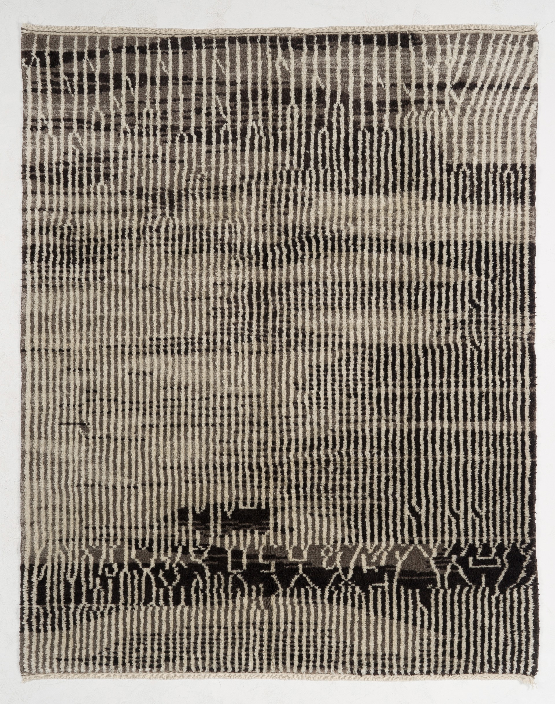 Gray & Beige Moroccan Rug with irregular Striped Patterns,